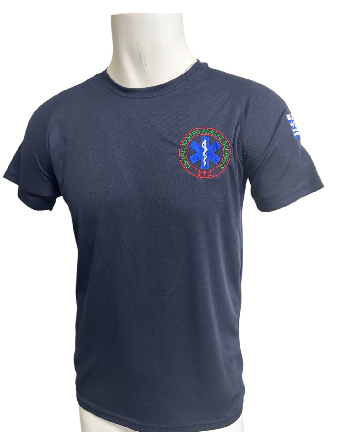 T-SHIRT QUICK DRY ΜΠΛΕ ΕΚΑΒ ΣΤΗΘΟΣ ΠΛΑΤΗ ΓΡΑΜΜΑΤΑ ΚΑΙ ΣΗΜΑΙΑ